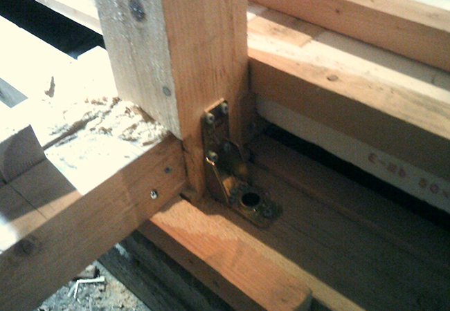既設の梁を支える柱を追加して柱頭金物を取付けた様子