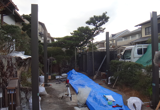 長年使用していたカーポートの老朽化に伴い、新しいカーポートに取替える工事をご依頼されました。