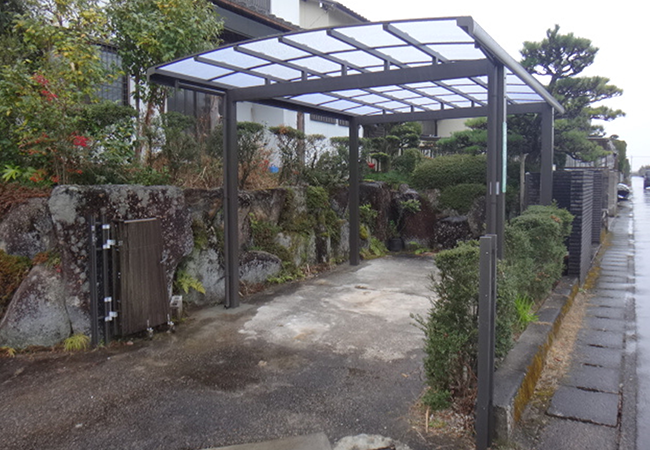敷地の北側に設置されているため、雪が解けにくいことを考慮して、既設と同様に4本柱のカーポートを設置しました。