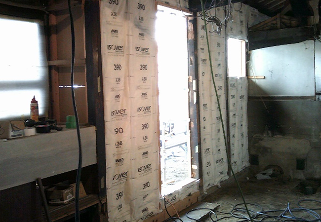 断熱は、カネライトフォームという発泡スチロールのようなものしきつめていきます。