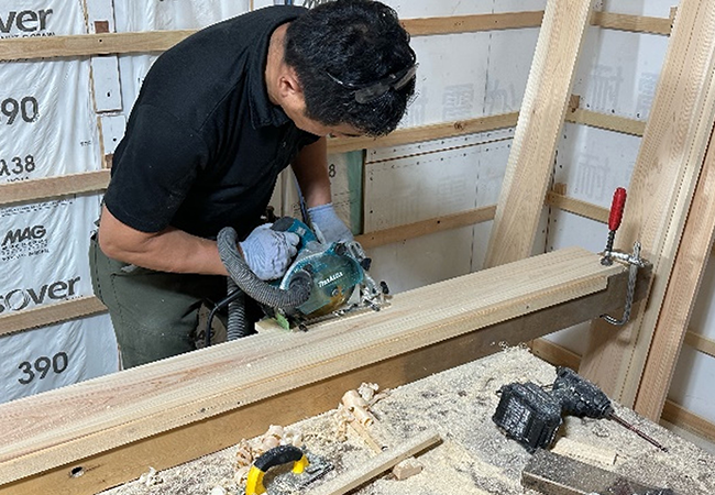 ざっくり分けると一回目に行ったときは造作、二回目行ったときは外のスロープ設置、室内の手すり取付、という感じでそれぞれ全然違うお仕事をやらせていただきました。