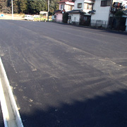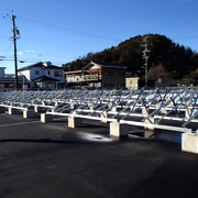 土地の整地、U字溝設置、可変側溝設置、土地の外周にフェンス設置、アスファルト舗装、コンクリート基礎設置、パネルを支える骨組をあと施工アンカーにて基礎に取付けた後、パネルを設置しました。