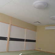 この建物は鉄骨造2階建てで1階には消防車両を配置し2階には消防団員の皆さんが待機できるように部屋が設けてあります。