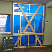 外壁面の窓部分に筋交いを入れたり構造用合板を張ったりし耐震性を増しました。