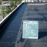 屋上では既設の防水層を撤去したのち、プライマーを塗りアスファルトシートを2層重ね、トップコートを塗布しました。