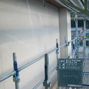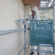 外壁に塗られたモルタル面がクラック(ひび)や浮き等により、剥離して落下する恐れがある箇所を専用工法を用いて補強する工事です。
