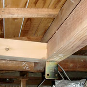 お施主様が、生活しながらの改修工事ですので、解体を極力控えて、不足している柱、梁を専用金物を用いて新設しました。