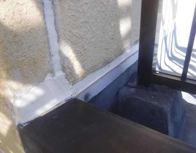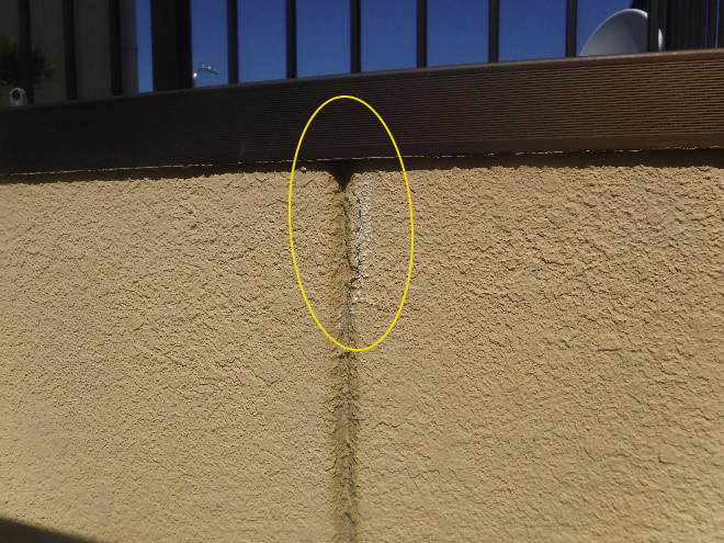 外壁のひび割れと欠けの補修はシーリングにて施工しました。