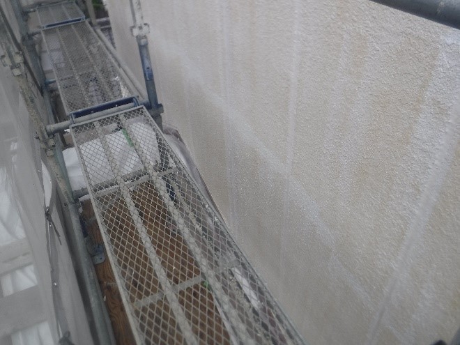 【施工中】ひび割れ補修後、外壁塗装:下塗