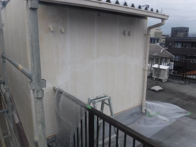 【施工中】外壁欠損補修後、外壁塗装:下塗