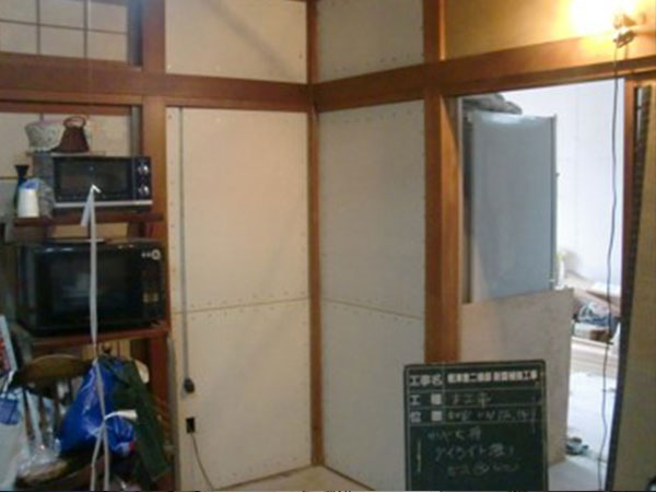 工事内容:1階外壁(外壁補強3カ所(あんしんかべ強化)、柱頭柱脚金物補強)、和室(内壁補強2カ所(かべ大将)、柱頭柱脚金物補強)