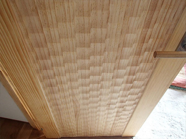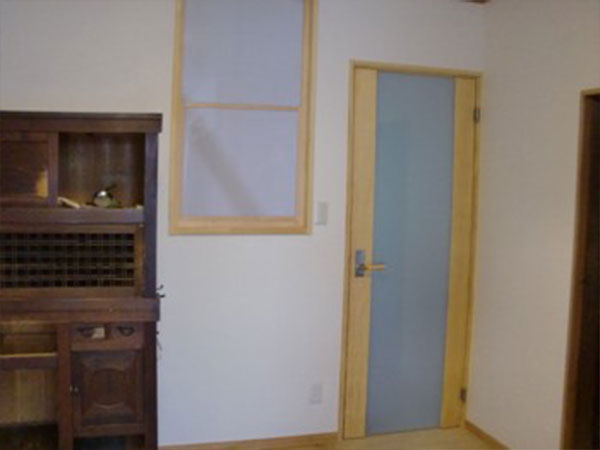 内窓:ウッドワン MOKUサッシ(木製無垢) 引違窓 H2.2m*W3.64m、木製建具:ウッドワン ピノアース(無垢) ガラスドア・なぐり彫りドア・上吊アウトセット引戸